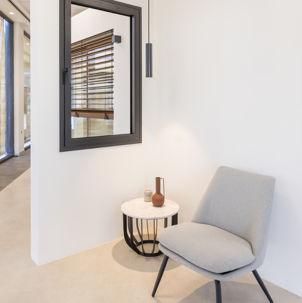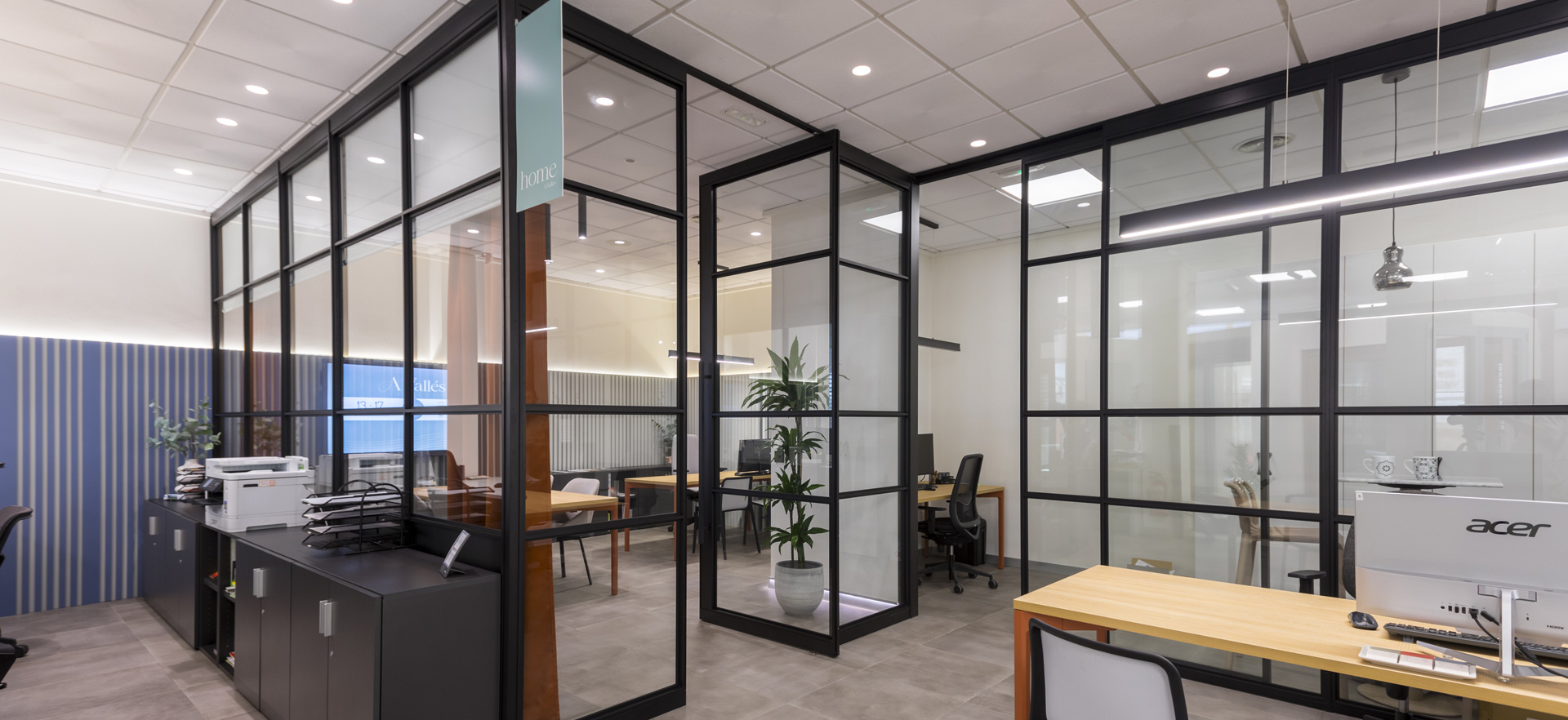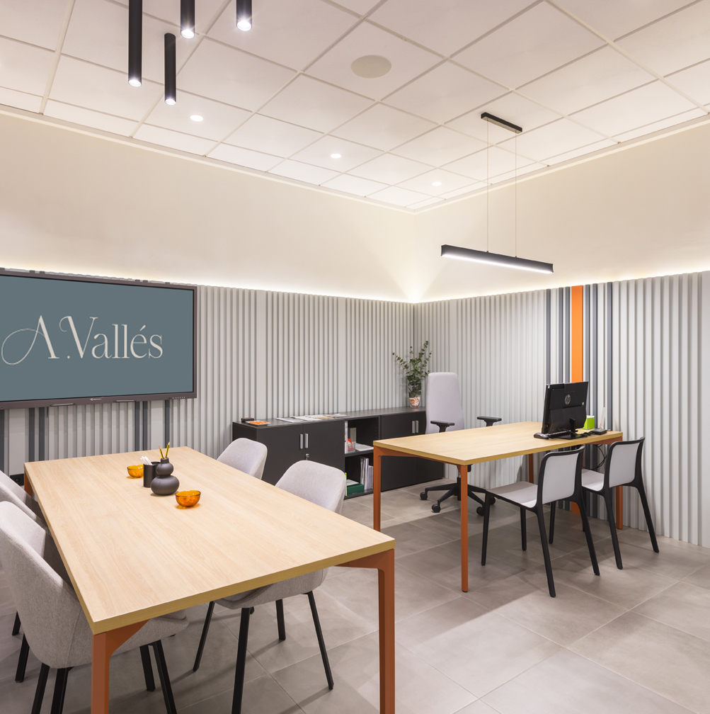 Las oficinas y showroom de Aluminios Vallés cambian de ubicación para instalarse en un local mucho más amplio. El proyecto de adecuación tiene como finalidad adaptar la distribución inicial del espacio para albergar a un equipo de profesionales y a todas las soluciones de cerramientos que componen su oferta. Al tiempo que se definen despacho, puestos de atención o sala de reuniones se ha creado un recorrido físico con un componente experiencial, en el que el cliente puede participar eligiendo cada detalle de sus futuros cerramientos. Los diferentes ambientes, llevados a la esencia, recrean espacios interiores y exteriores para acompañar a las perfilerías de aluminio y pvc que fabrican en su taller en Jávea.