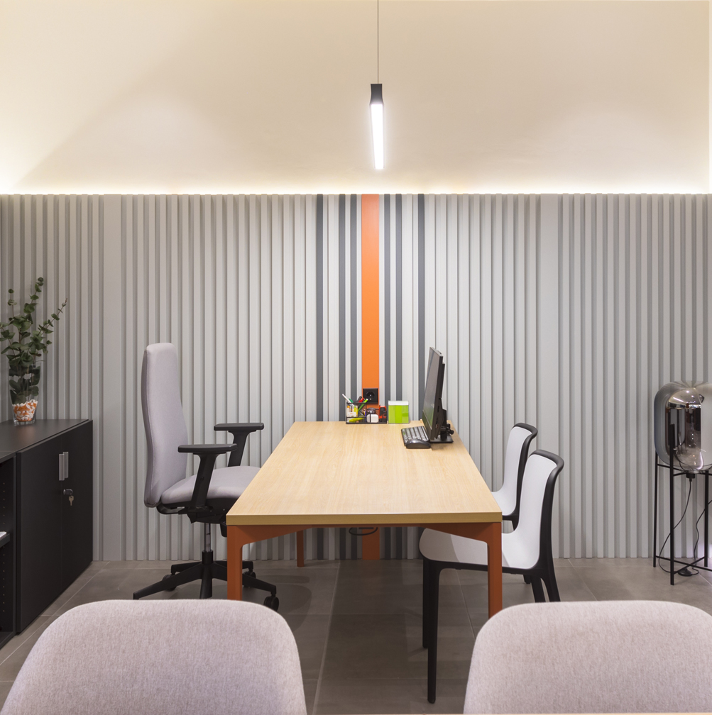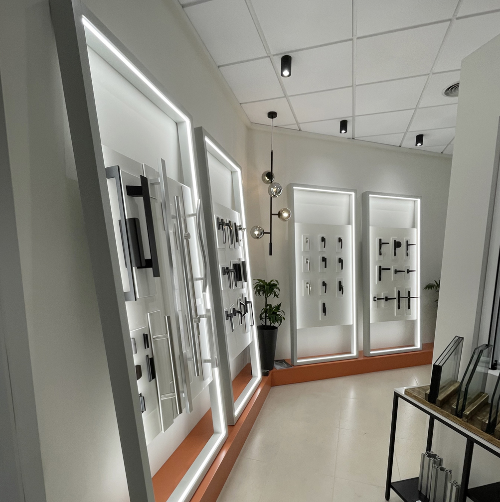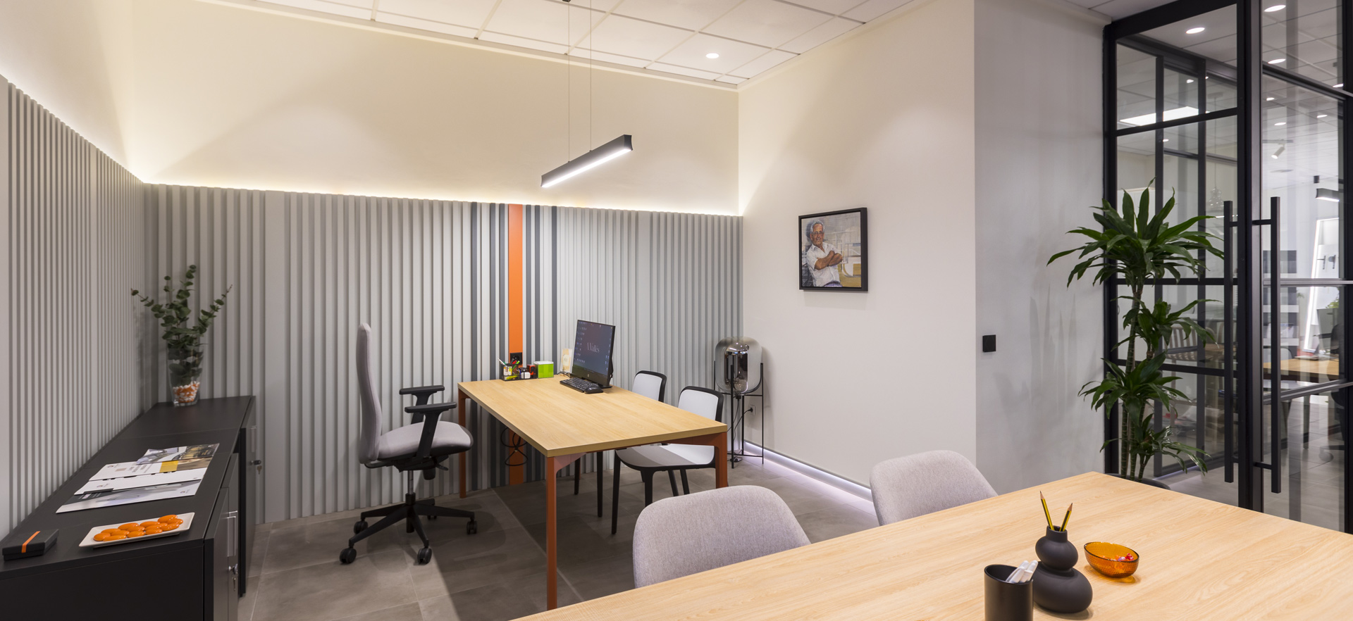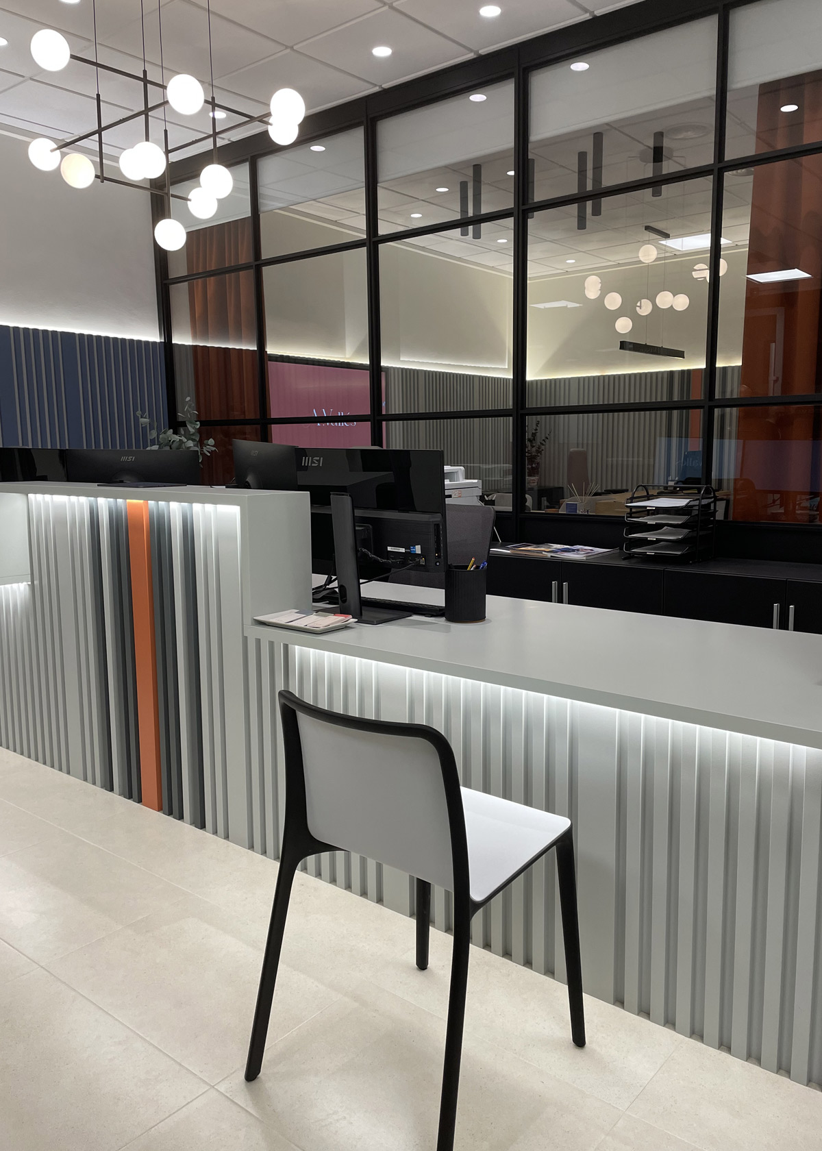 Las oficinas y showroom de Aluminios Vallés cambian de ubicación para instalarse en un local mucho más amplio. El proyecto de adecuación tiene como finalidad adaptar la distribución inicial del espacio para albergar a un equipo de profesionales y a todas las soluciones de cerramientos que componen su oferta. Al tiempo que se definen despacho, puestos de atención o sala de reuniones se ha creado un recorrido físico con un componente experiencial, en el que el cliente puede participar eligiendo cada detalle de sus futuros cerramientos. Los diferentes ambientes, llevados a la esencia, recrean espacios interiores y exteriores para acompañar a las perfilerías de aluminio y pvc que fabrican en su taller en Jávea.