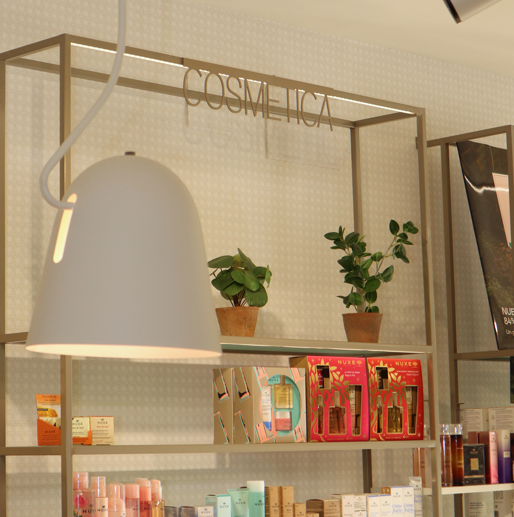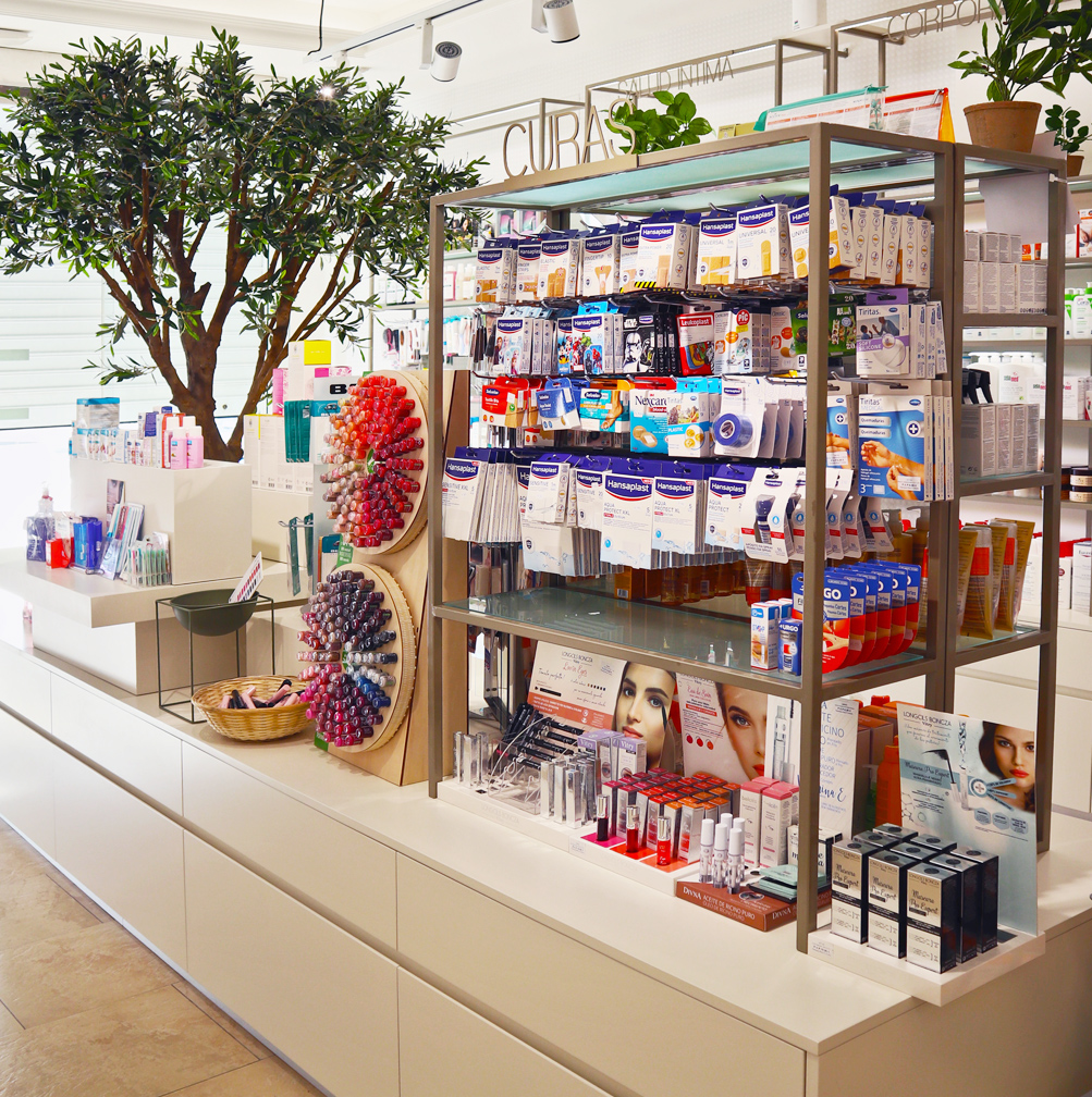 En este proyecto de interiorismo para una farmacia, el reto era claro: transformar por completo el espacio respetando solo el pavimento original y mejorando la distribución de la botica y del despacho privado.