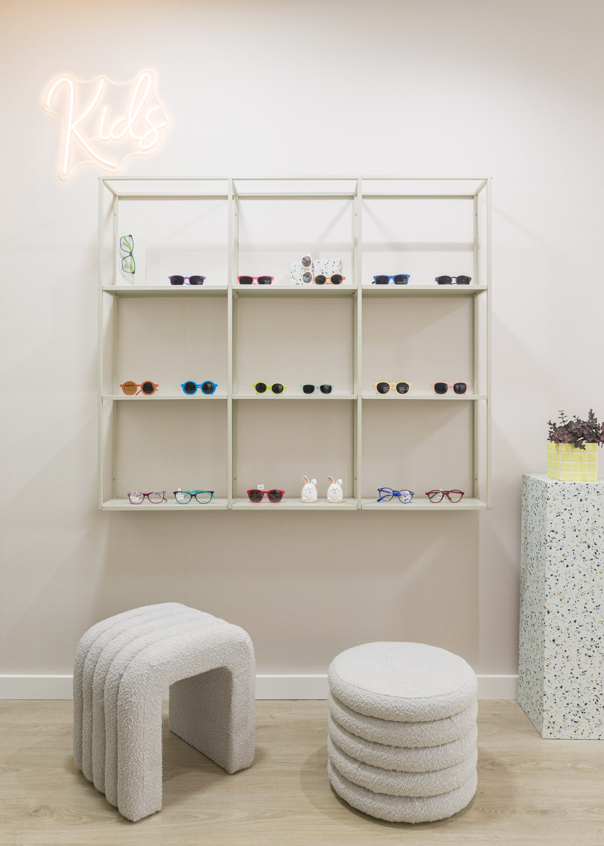 Así, la envolvente es neutra y minimalista, con revestimientos suavemente texturados, al igual que el mostrador de la óptica, mientras que se han instalado nuevos expositores centrales, con pequeños guiños de color, que aportan energía y movimiento además de mostrar y realzar el producto.