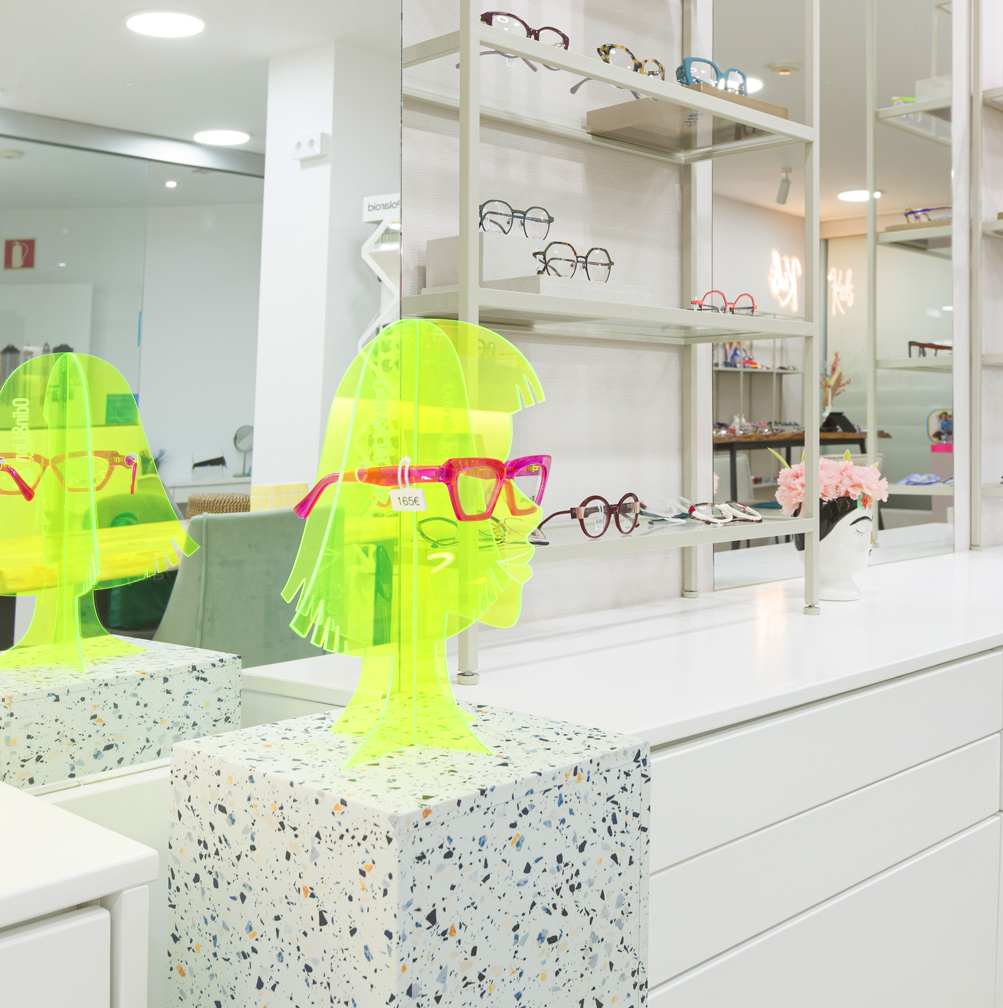 La renovación de Óptica Diana coincidía con la nueva andadura profesional que tomaba un negocio asentado en la zona pero que buscaba ahora reflejar sus puntos fuertes: la atención personalizada, centrada cien por cien en el cliente y la apuesta por el producto. Desarrollamos un interiorismo delicado que pone el foco en ambos y que busca mejorar la interacción del personal con el cliente y de este con las gafas expuestas.